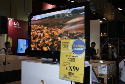 I believe the model name is LG’s 42PG10R, which Courts was clearing on Level 4 for (if I don’t remember wrongly) S$1,299 at the time I was there. Good deal, as these folks clear their HD-ready models to move on to Full HD LCDs, which surprisingly wasn’t all that cheap.