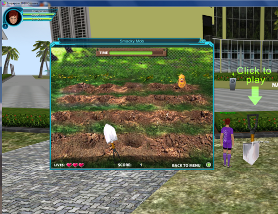 One type of game that you can play solo are the embedded flash games that appear in the world, lke this whack-a-mole game below.