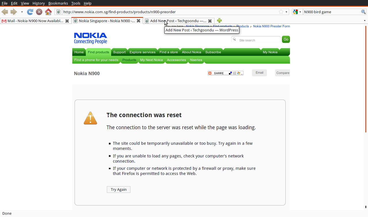 Update: In response to enquiries from Techgoondu, Nokia has verified that “their server was definitely up and running on Monday [Mar 15], but due to load, there may have been intermittent issues, where some users may have experienced an error message.”