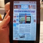 Of all the software I saw on the Galaxy Tab, I am happiest with the e-reader. Loaded with newspapers such as USA Today and other magazines and books, it works like a gem. Zooming in and out of a page is fast and effortless, as is flipping through the pages. I can flip a newspaper page on-screen faster than an actual physical page. For once, I think I will read newspapers on a screen.