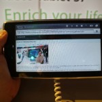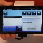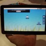 This LCD screen maker has come up with not one but two tablets here at IFA. The smaller Viewpad 7 has a 7-inch screen offering Android 2.2 goodness. It’s still a prototype, so we’d be kind here. The 800Mhz processor here is a little slow, thus contributing to a slight lag when switching apps. This €399 device is out possibly as early as next month, say Viewsonic folks at their booth.