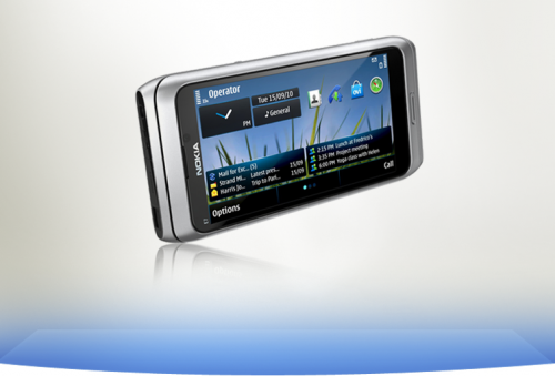 The E7 itself is a beautiful piece of work. Its form factor is similar to the N97: a touch screen slides up in a tilted angle to reveal a full QWERTY landscape keyboard that is a joy to type on. Unlike the N97, the E7 features a 4-inch AMOLED capacitative touch screen (640 x 360) with Nokia’s ClearBlack technology.