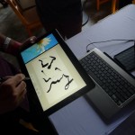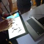 Essentially, it’s a clamshell design with two screens on either side of the lid. These are independent screens, so you can either have two users staring at things on both sides, or have them both display the same thing. I tried scribbling on one side of the screen and sure enough, the effect of my handwriting is seen instantly on the other screen as well.
