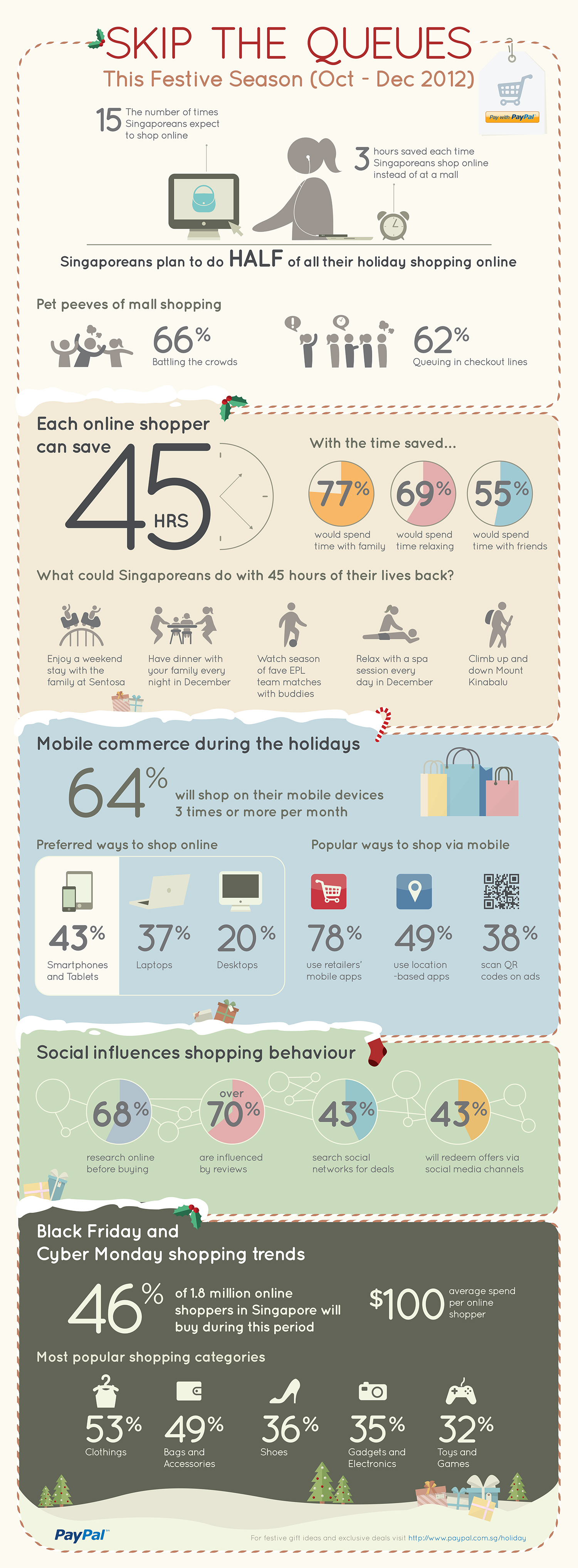 Singaporeans plan to do half their holiday shopping online this year, saving no less than 45 hours of their time, according to a recent PayPal survey.