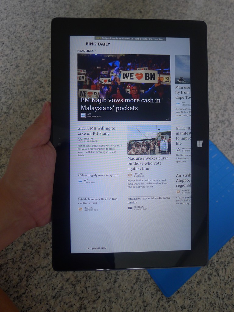 But strangely, on the Surface RT, I had the browser freeze up the screen a couple of times over the past few days. I could not fire up any apps when that happened – usually when I switched between a few apps swiftly – and eventually I restarted the tablet.