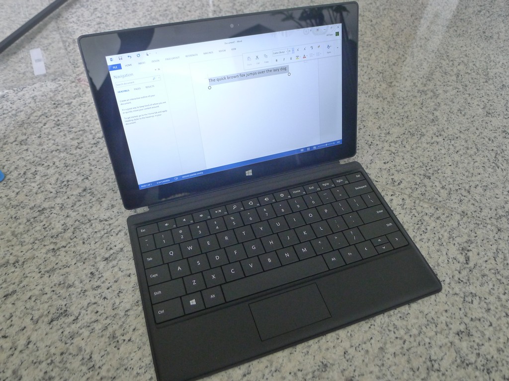 While the 1366 x 768 screen isn’t the sharpest around, the 10.6-inch display is helped by Microsoft’s ClearType technology, which makes text look rather sharp. This is not magic, of course. Look closely and you’d see the difference between the Surface RT’s screen and an iPad with Retina or a Nexus 10.