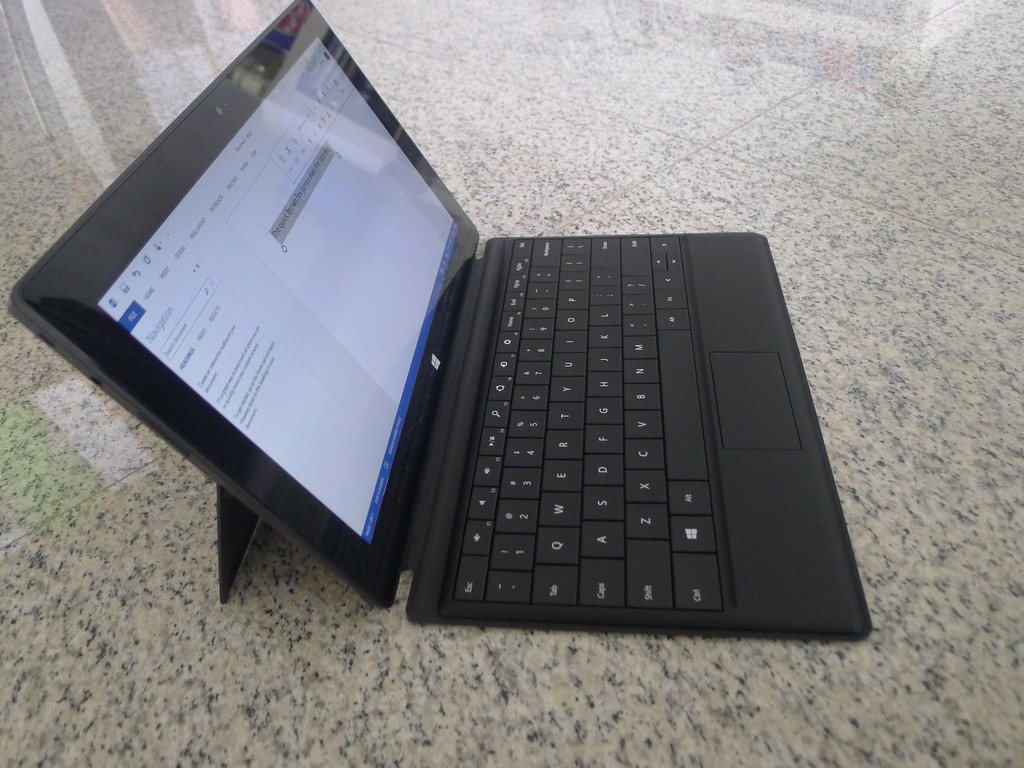 I really like the built-in kick-stand, which props up the Surface RT at a nice angle for either watching a movie or firing away a report. Yes, the Surface RT is thicker than the iPad or Nexus 10, but it also doesn’t require a cover to be propped up.