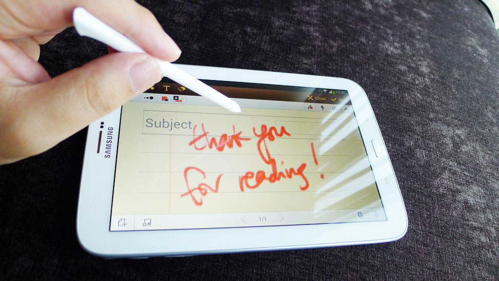 This is the size of the notepads I’ve been using all my career to scribble down notes at interviews and meetings, so the size just works perfectly. The stylus is pressure-sensitive, so if you feel like an artist, the Galaxy Note 8.0 is really nice to draw on.