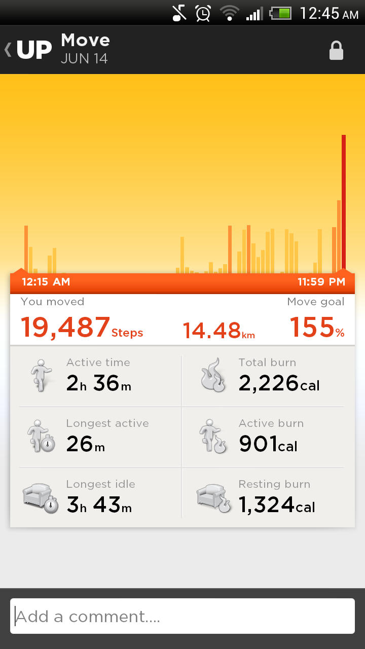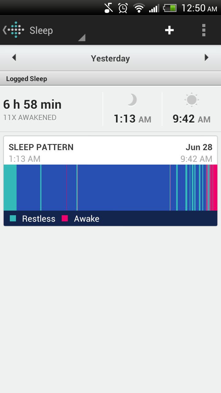What I really like about the UP logs is that I can track my activity or sleep on a minute-by-minute basis by swiping my finger over the bar chart at the top. I can see the exact time I woke up in the middle of the night, for example, or the times when I was most active during the day.