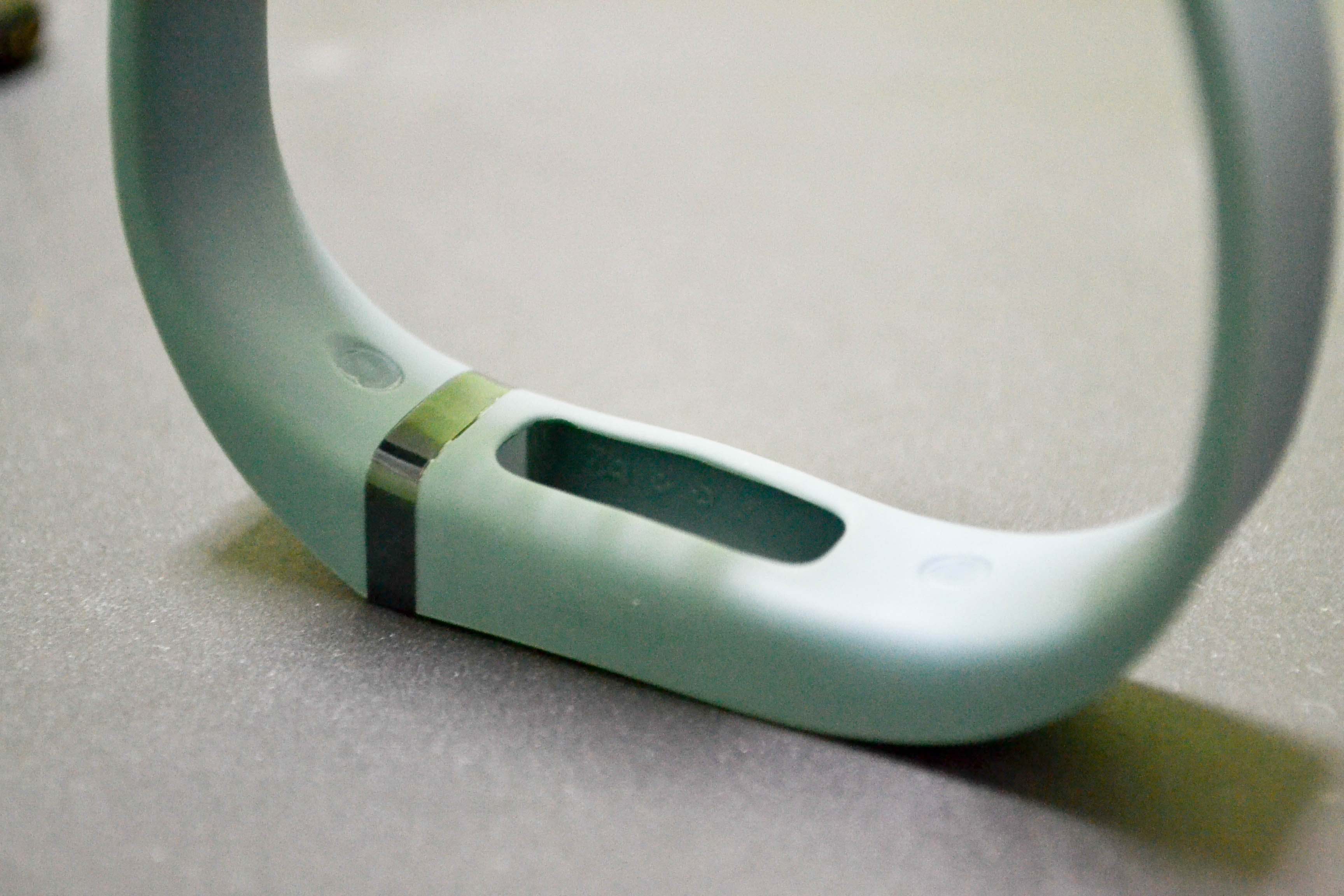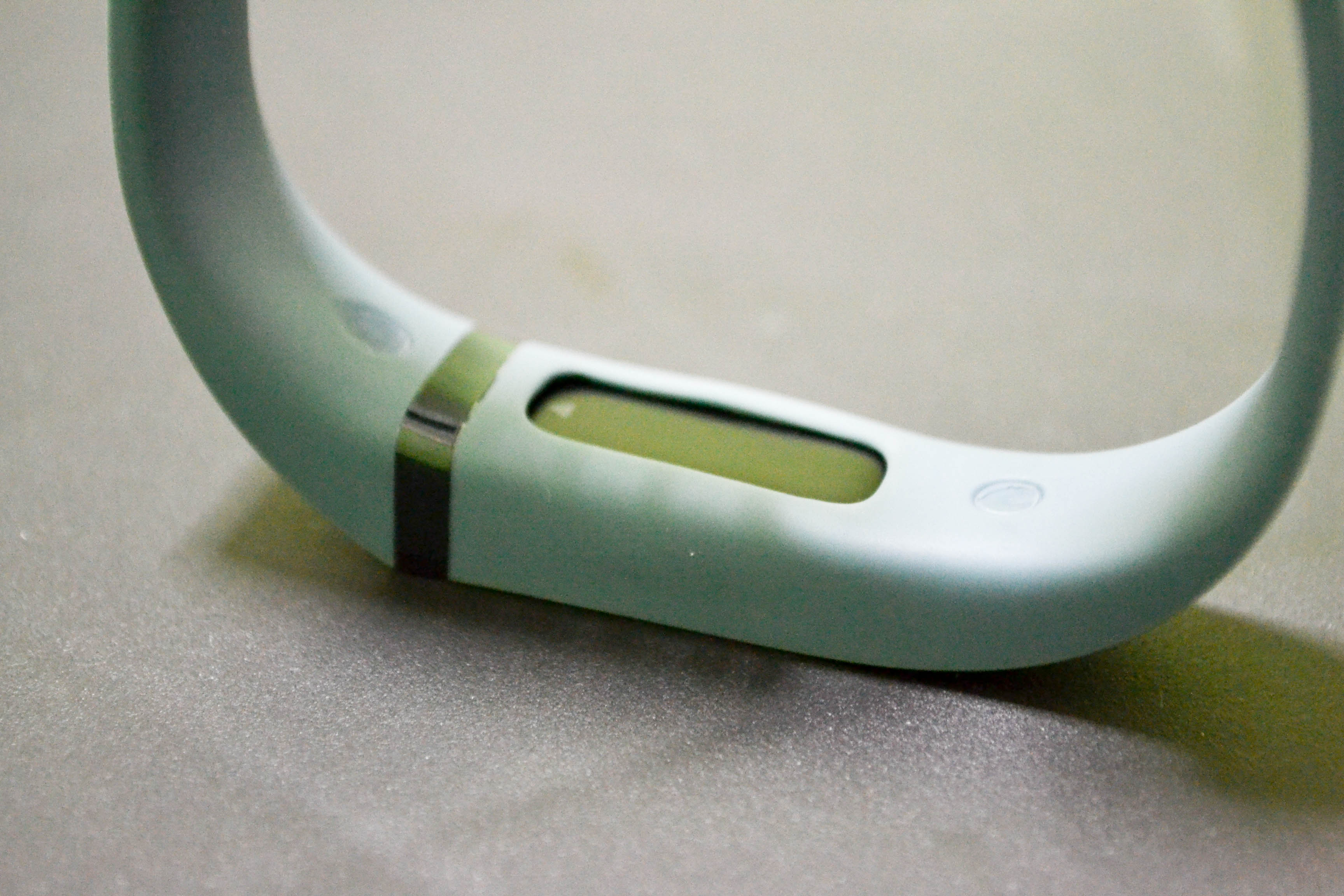 The Flex is much plainer, and reminds me of a watch – it has a strap with a clasp, which can be annoying and difficult to put on. There is a clear plastic “screen” on the Flex that allows you to see the indicator lights.