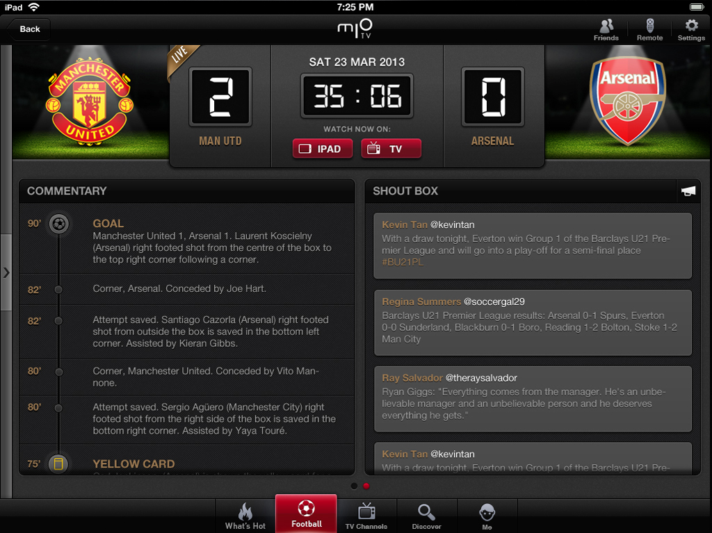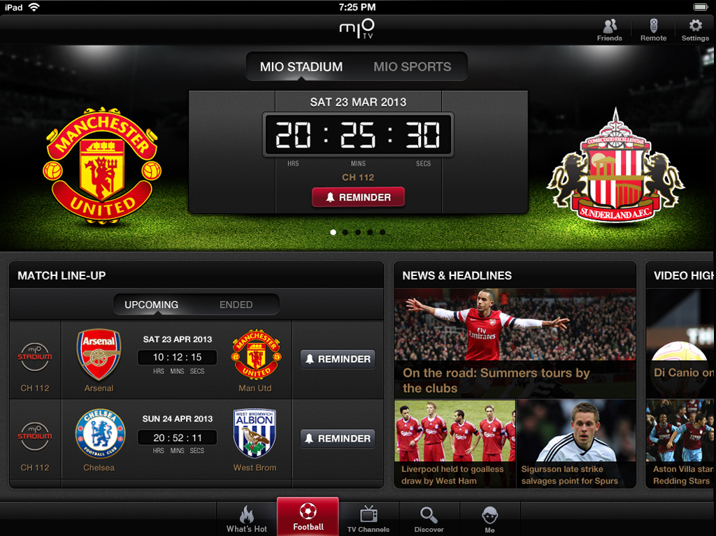 The mio TV Go app will also provide text commentary on other ongoing matches, so viewers can check up on other matches while following their team on the big screen.
