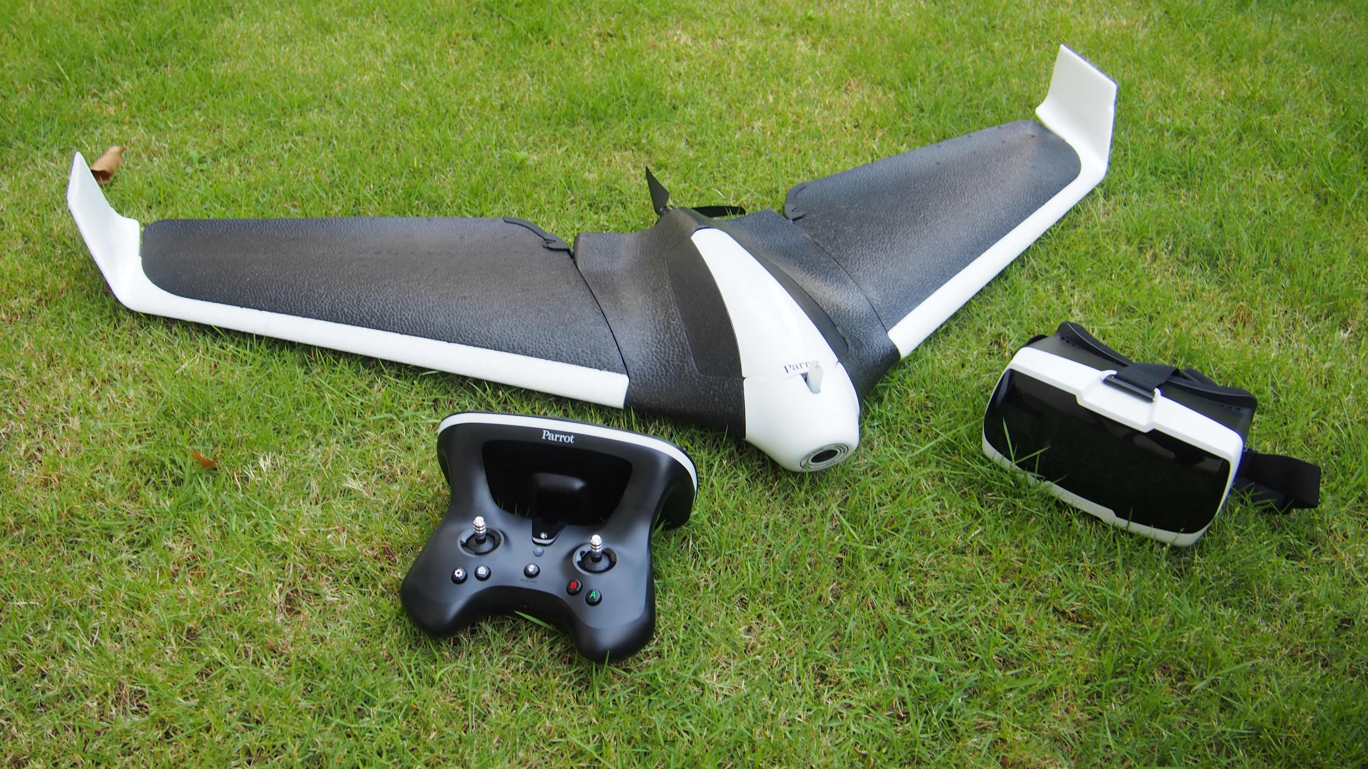 The live video feed from both devices can be viewed through a virtual reality (VR) headset Parrot calls Cockpitglasses, as long as it has been fitted with a smartphone running the FreeFlight Pro app.