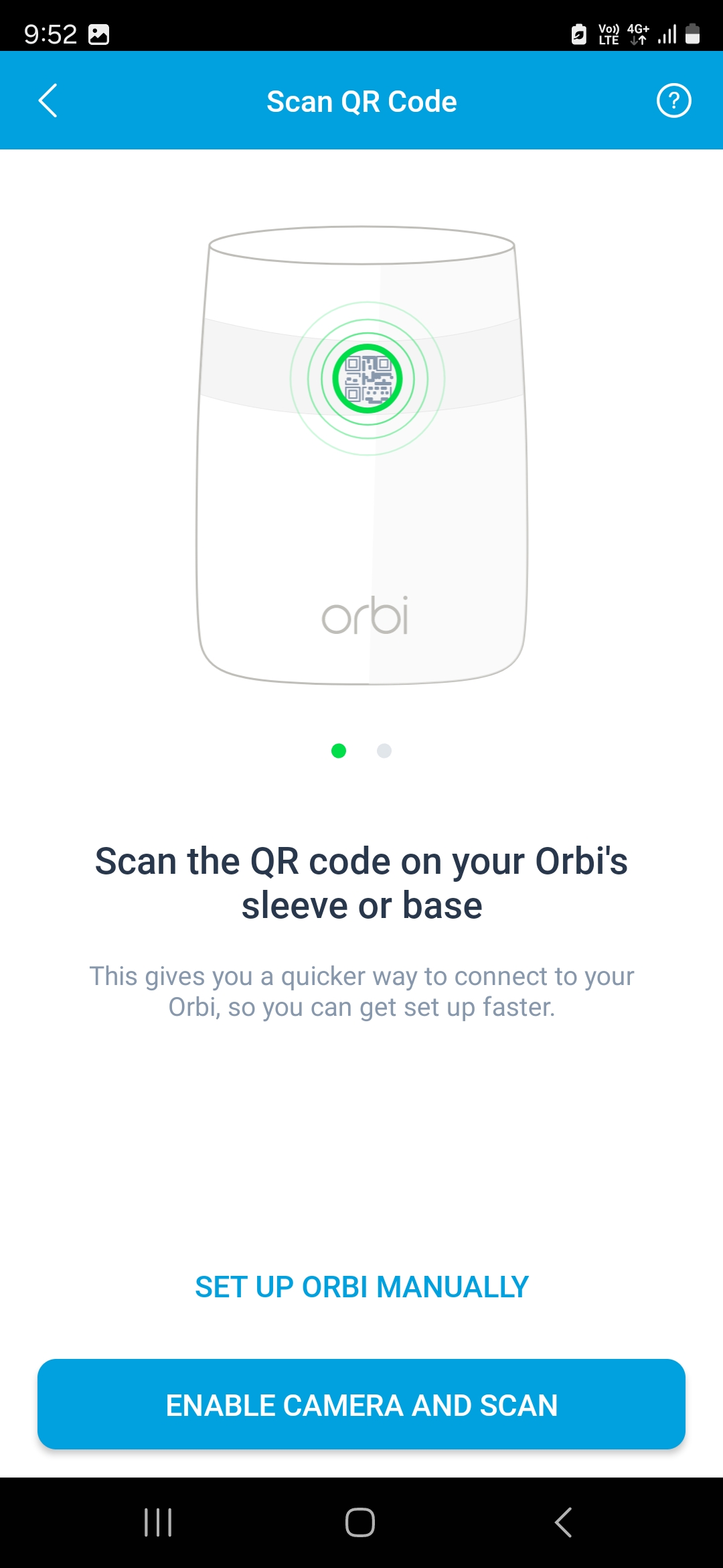 Scan the QR code on a quick start card to download the Orbi app onto a smartphone, and the instructions guide you through every possible step. This QR code could have been pasted on the primary node though, to be even more foolproof.