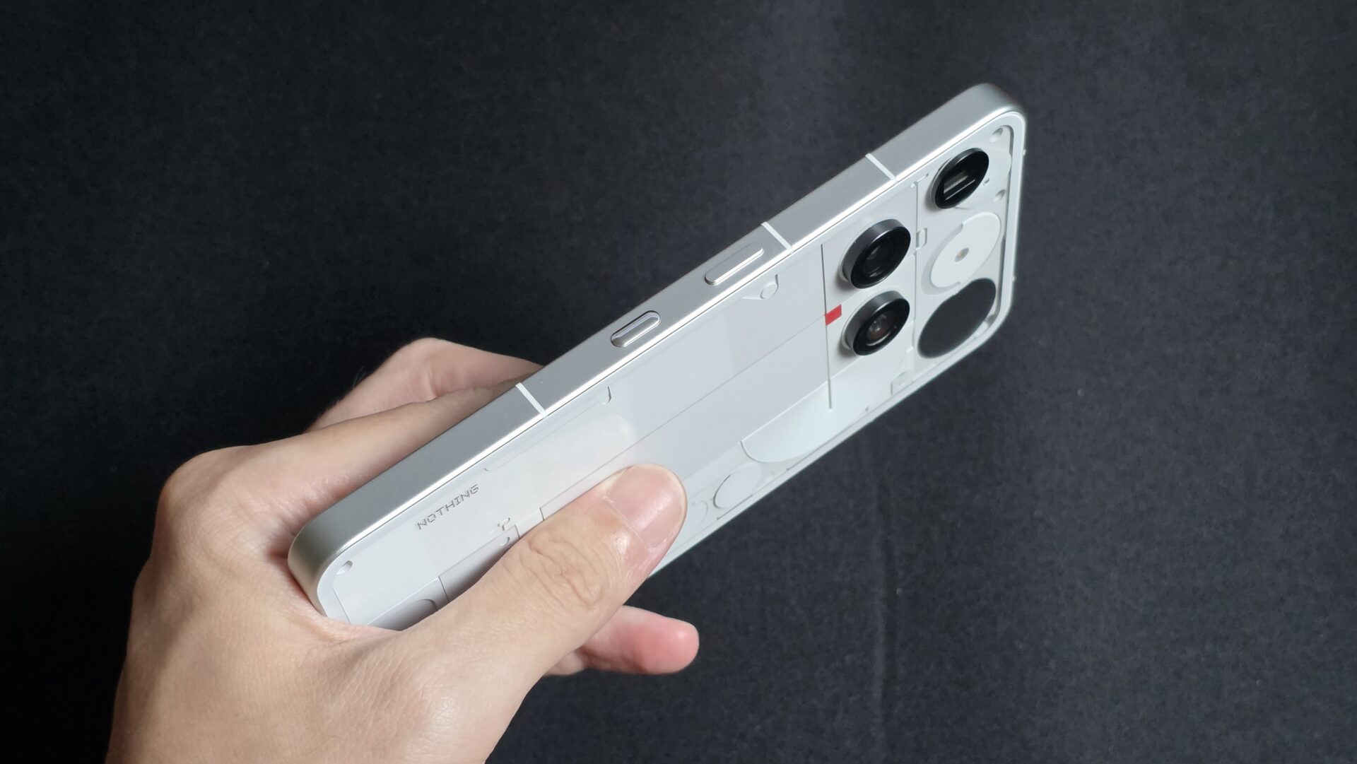 Nothing has taken into account its design evolution over the past few devices. The Nothing Phone (3) has matte metal sides that are rounded at the four corners, but angular where it meets the flat front and rear surfaces. There is just the right amount of chamfering on these angular edges to prevent the phone from digging into your palm.