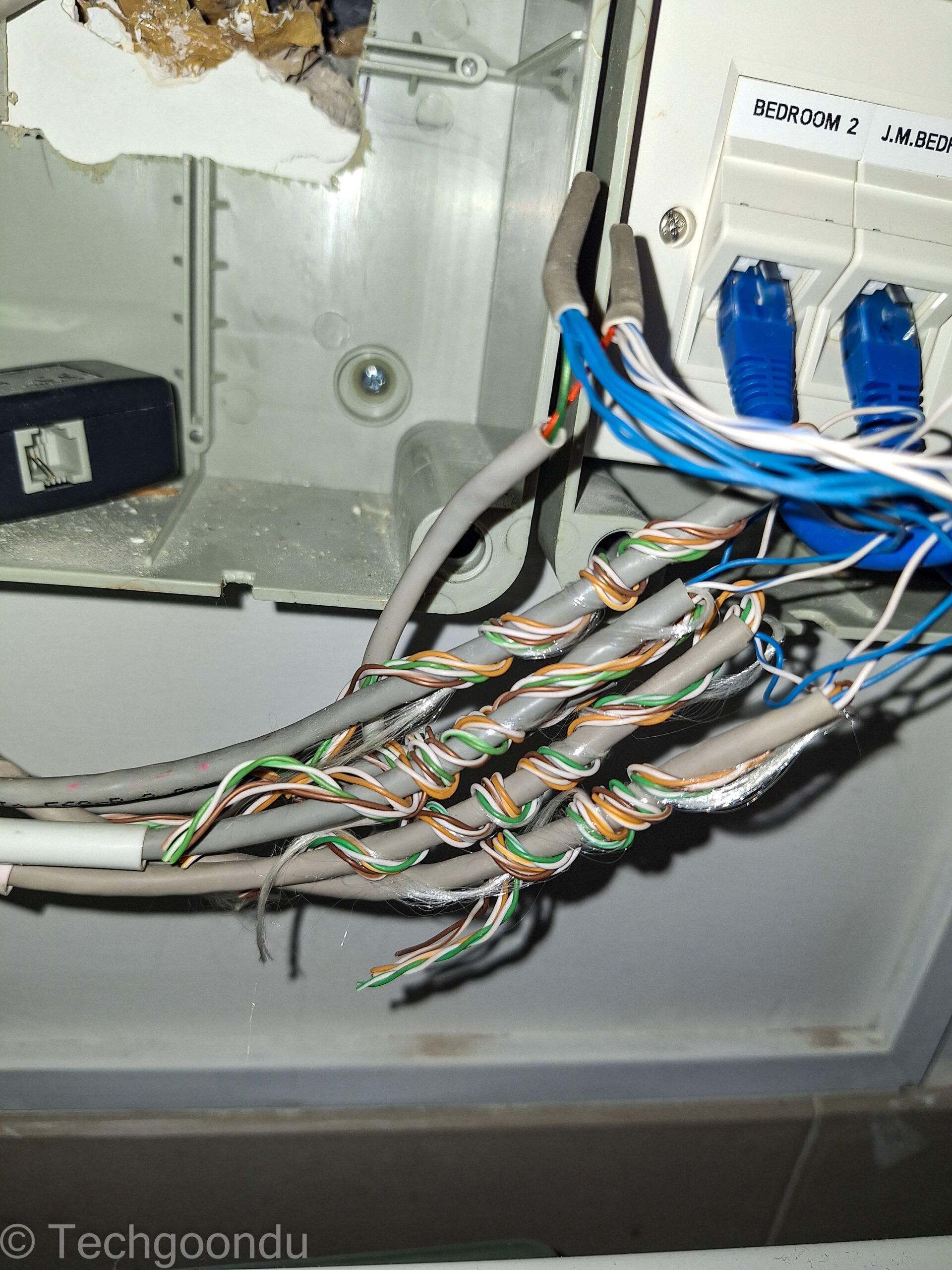 This meant I had to look up my house’s electrical diagram to find where the sealed sockets are. Next, I had to hammer away at the wall and remove the plasterboard covering the conduit. This would give access to the wire in the wall to be converted to an Ethernet cable and socket.