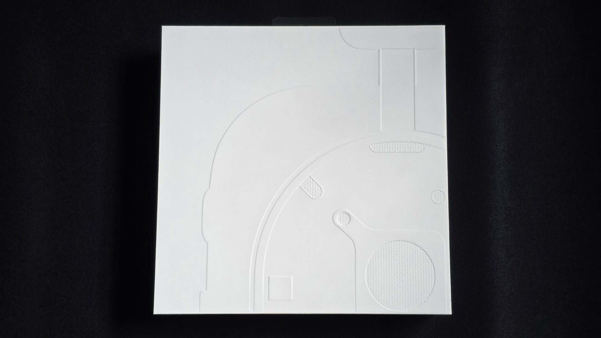 A rounded rectangle contains each earpiece, and the elongated circle is meant to resemble a cassette tape. The rectangular indentation in the middle has two circular buttons (not usable) that resemble tape reels, while the cluster of symmetric holes all over add texture.