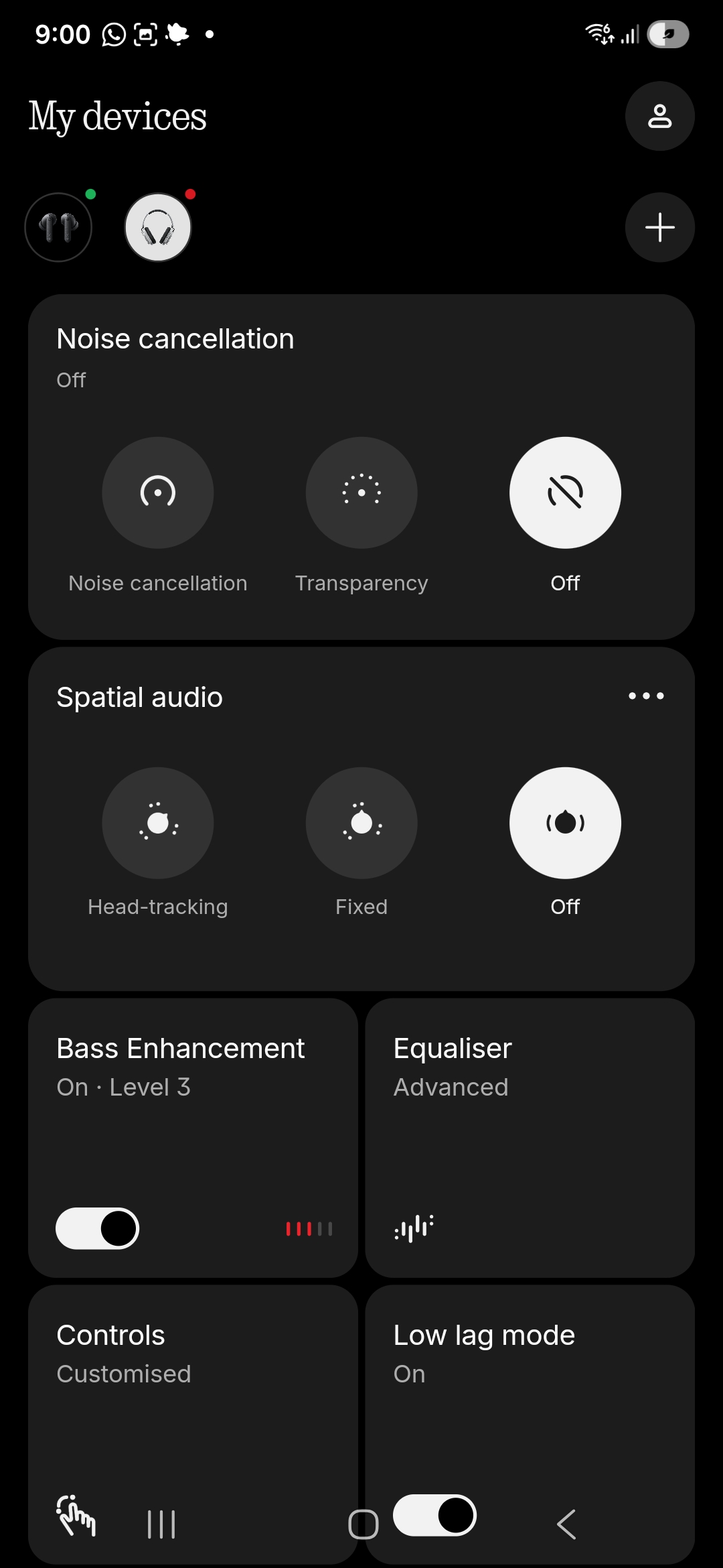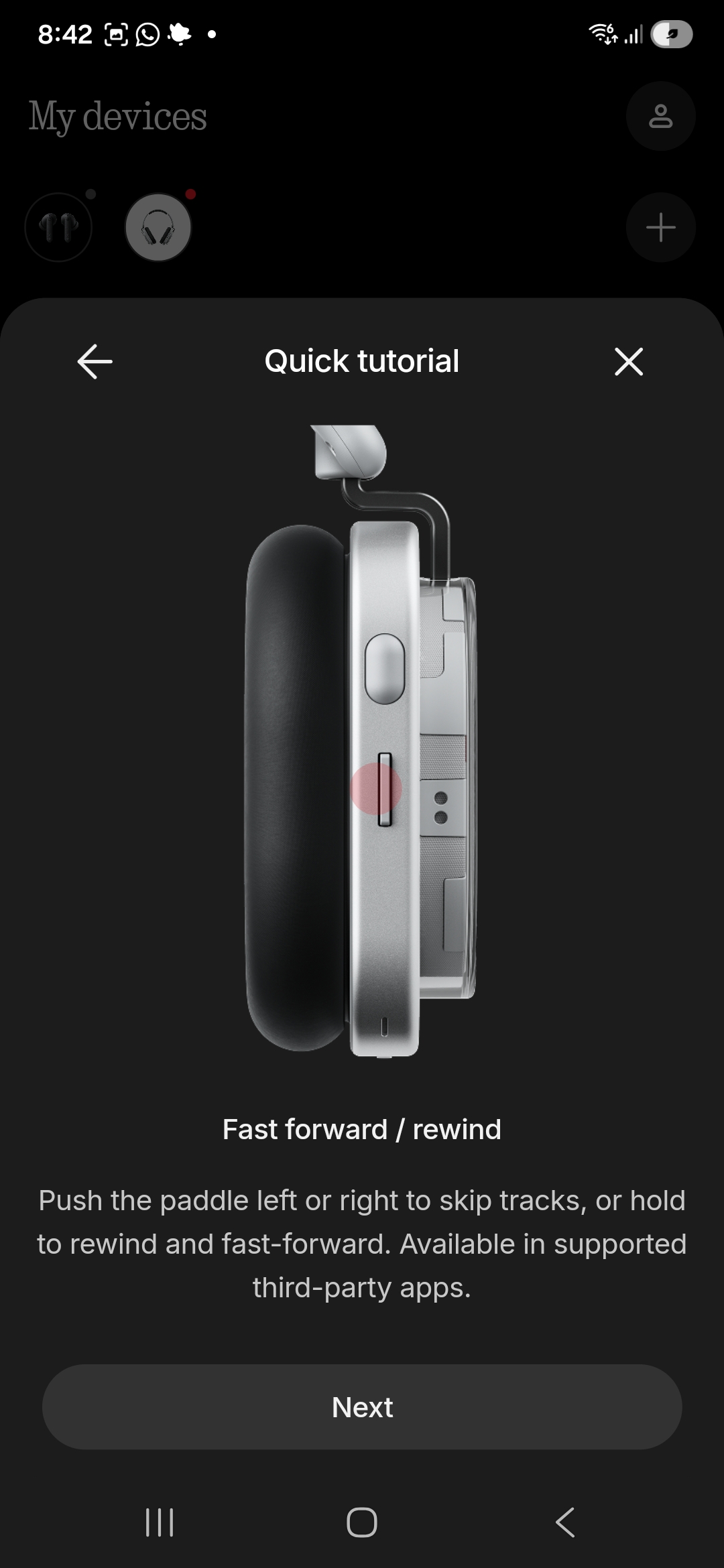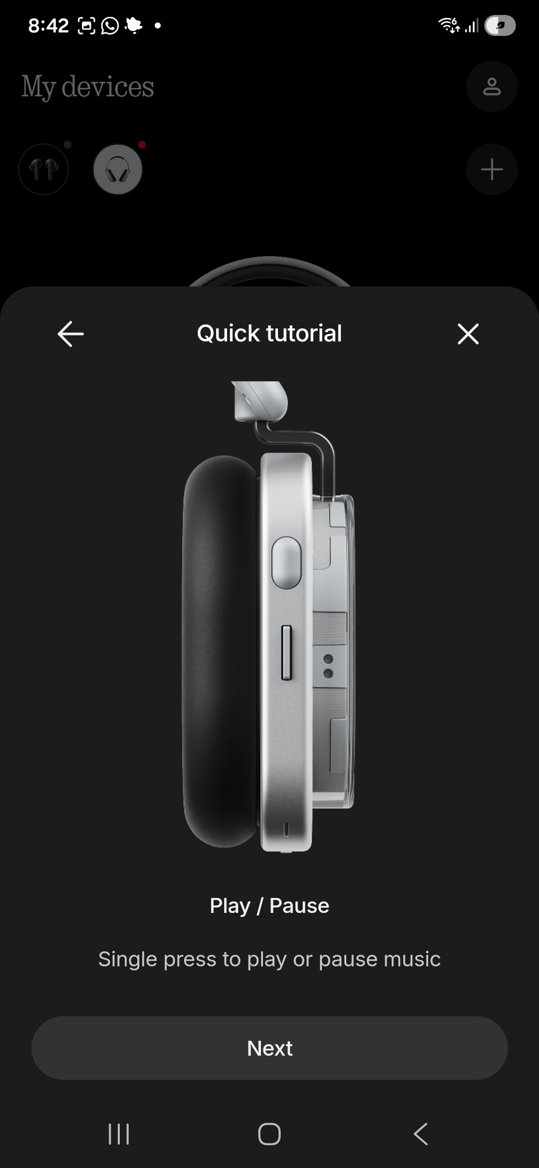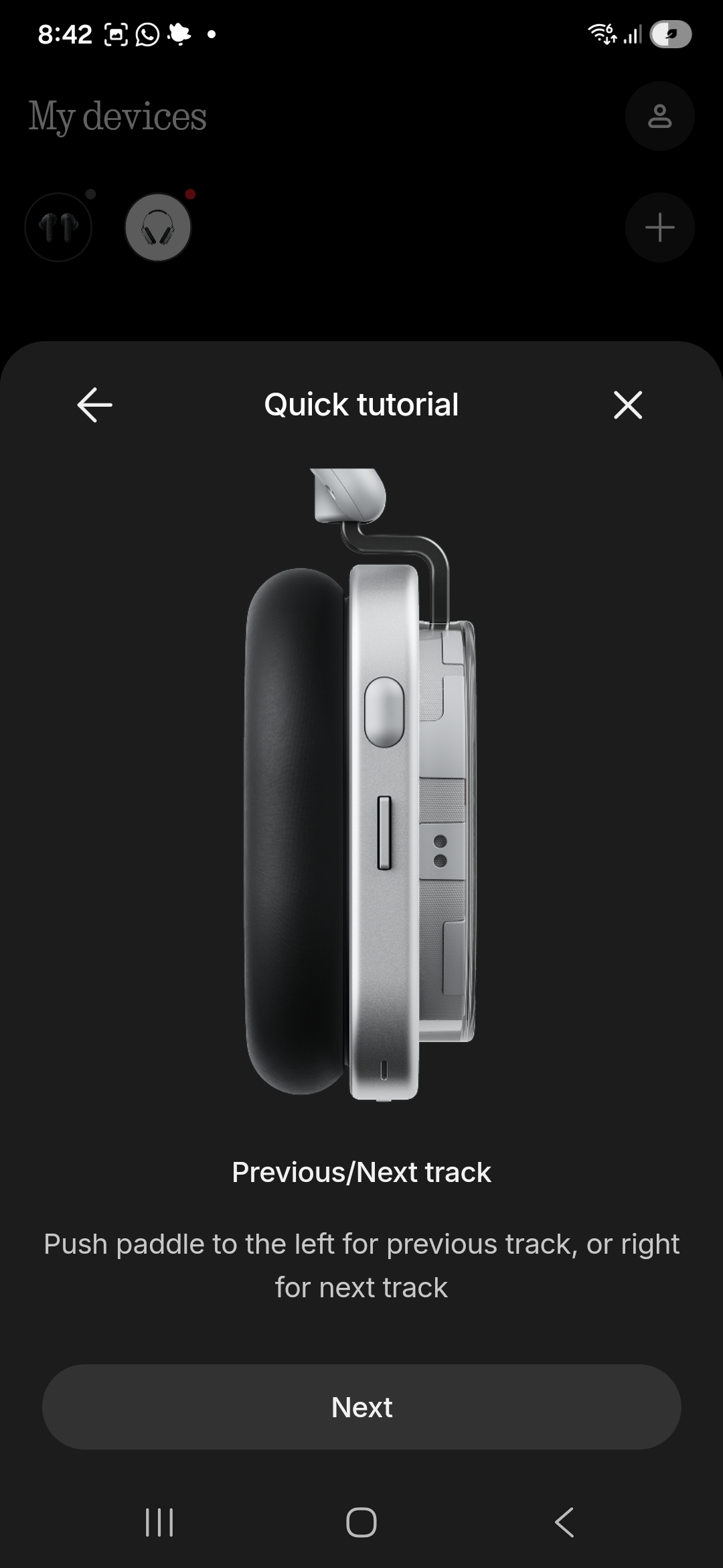 The roller on the top of the right headphone can be used for volume control, while the paddle button next to it is for changing tracks. A third button on the front face of the right headphone can be mapped as a shortcut to, say, the voice assistant or to cycle between equaliser modes.