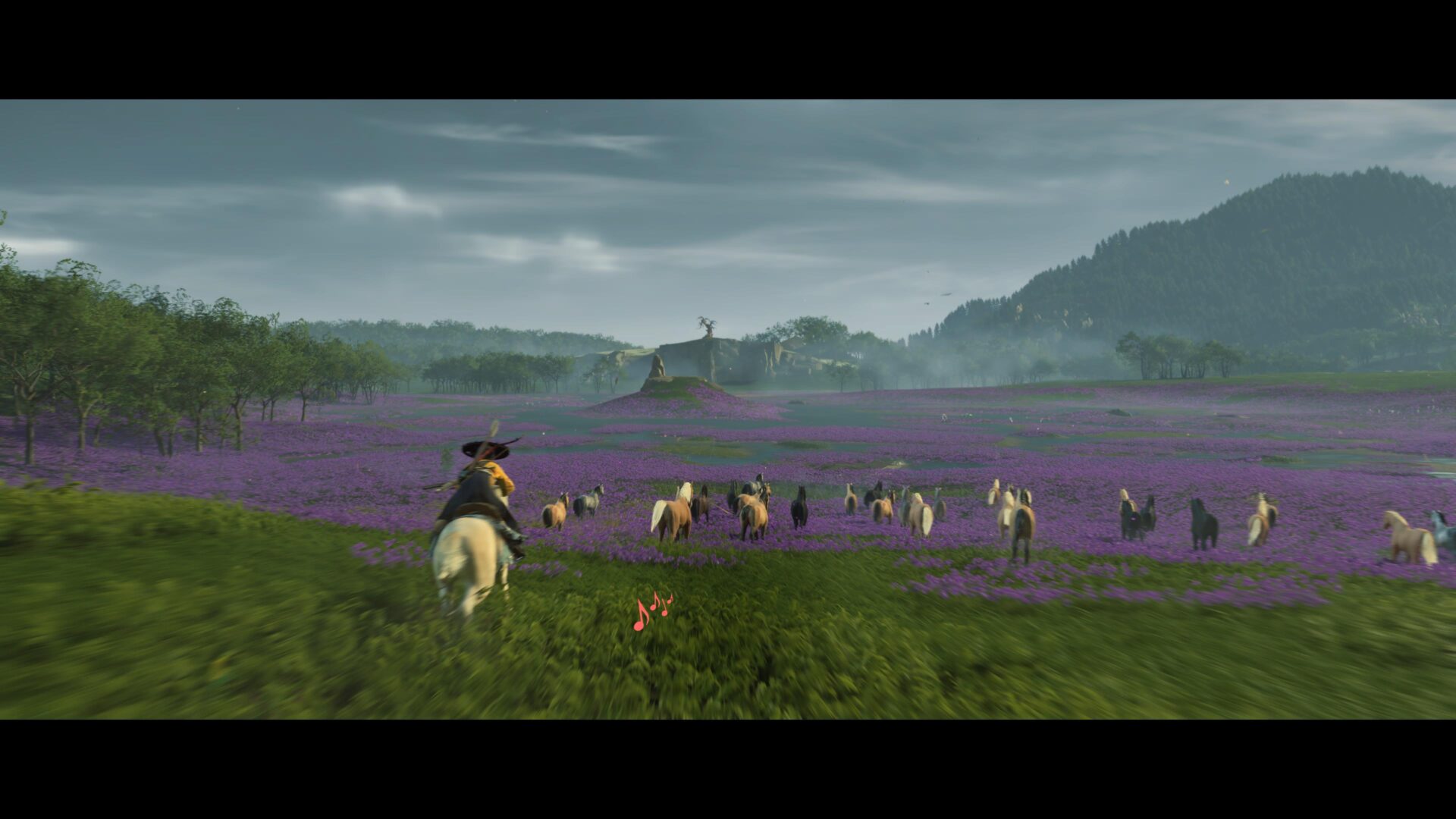 Ghost of Yōtei’s music is quiet and reflective with a sparse soundscape featuring traditional Japanese instruments like the shamisen and flute. The beat picks up during battles and high speed chases but the mood is mostly contemplative. If you prefer a more modern take, there’s an option for a lo-fi musical beat by Shinichiro Watanabe for a chill vibe during exploration.