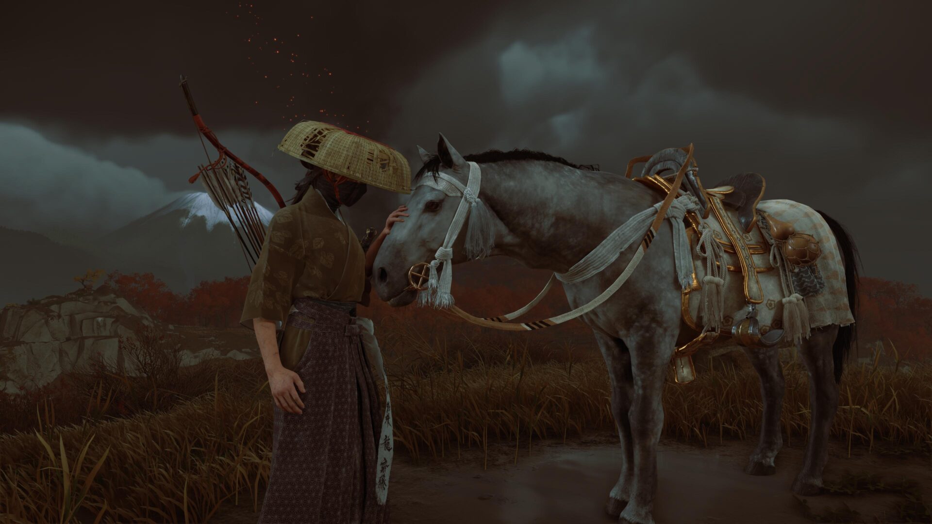 Atsu’s quest for vengeance takes her across the western Ishikari plains and the freezing Teshio Ridge in the east of Hokkaido. The game allows Atsu to freely travel across the regions, and even encourages her to visit her old family home in the Yōtei Grasslands to use her father’s forge to upgrade weapons and reflect on memories of the past.