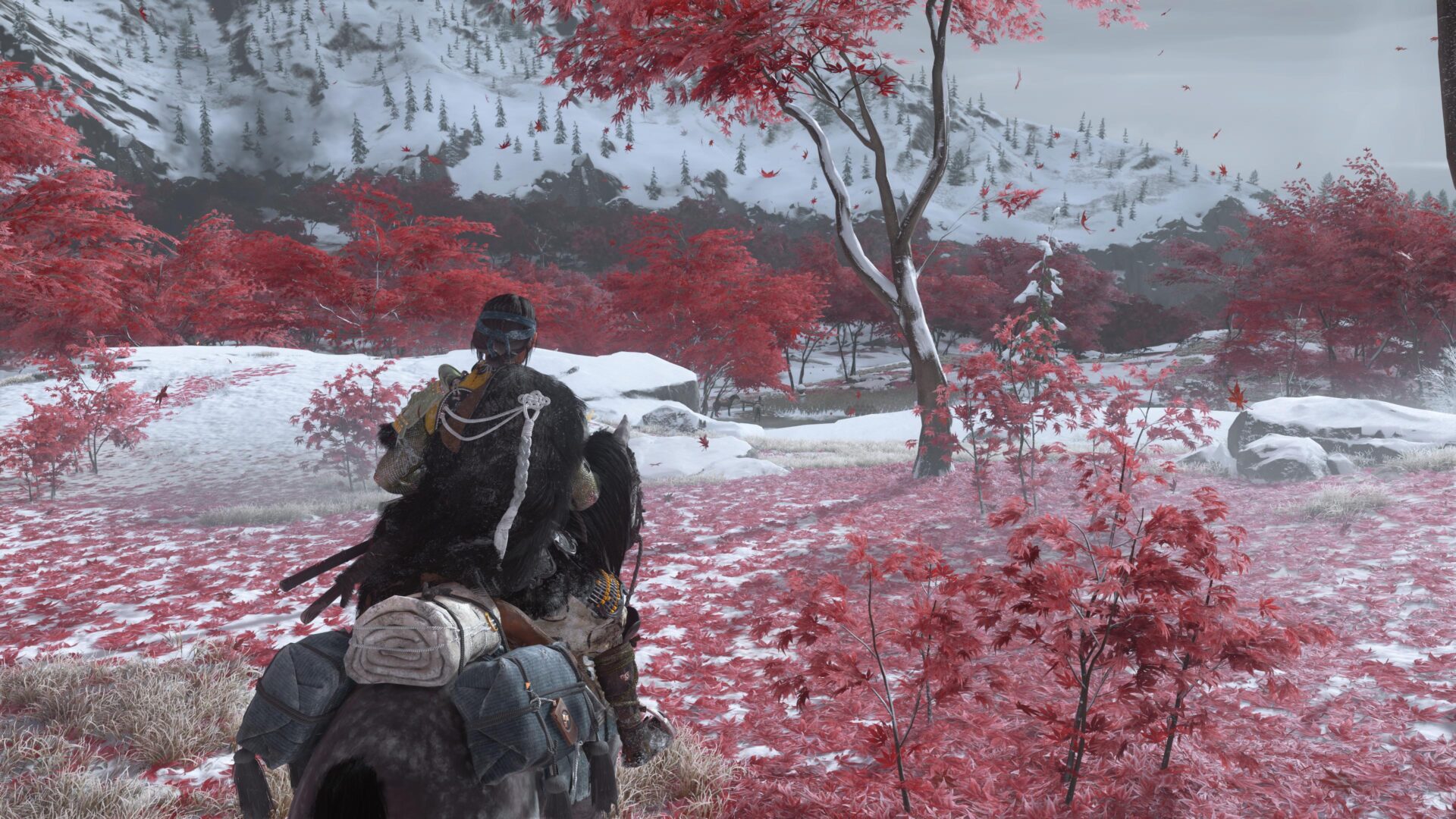 Just like Ghost of Tsushima, Ghost of Yōtei’s stunning graphics makes the game a sight to behold. The changing weather conditions, the varied landscapes of violet lavender fields and red maple trees, frozen rivers and dramatic mountains, and breath-taking sunrises and sunsets makes every frame postcard-worthy.