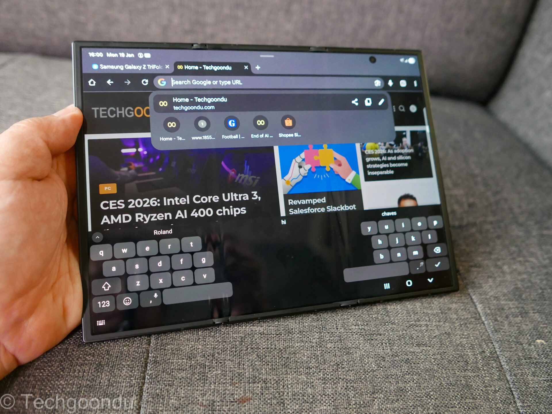 Interestingly, after all the refinements in the past year or so, Samsung’s Galaxy Z TriFold is actually millimetres thicker than its Huawei predecessor, when folded, mainly because of the way it is clammed up.
