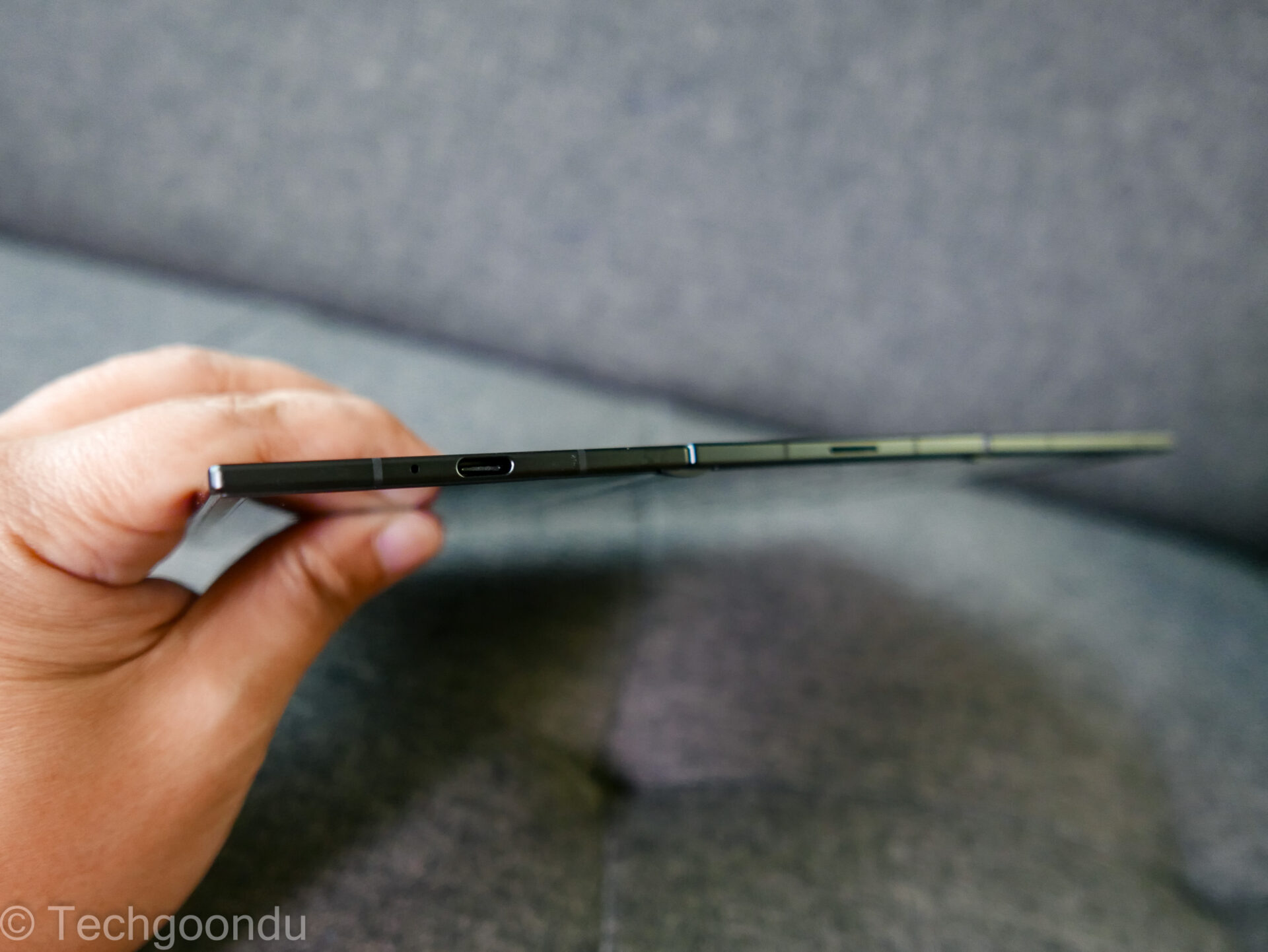 One of the two hinges is larger – pretty much like a Galaxy Z Fold 7 – while the other is smaller and snaps open easily. You’re supposed to open and close the device in the right order.