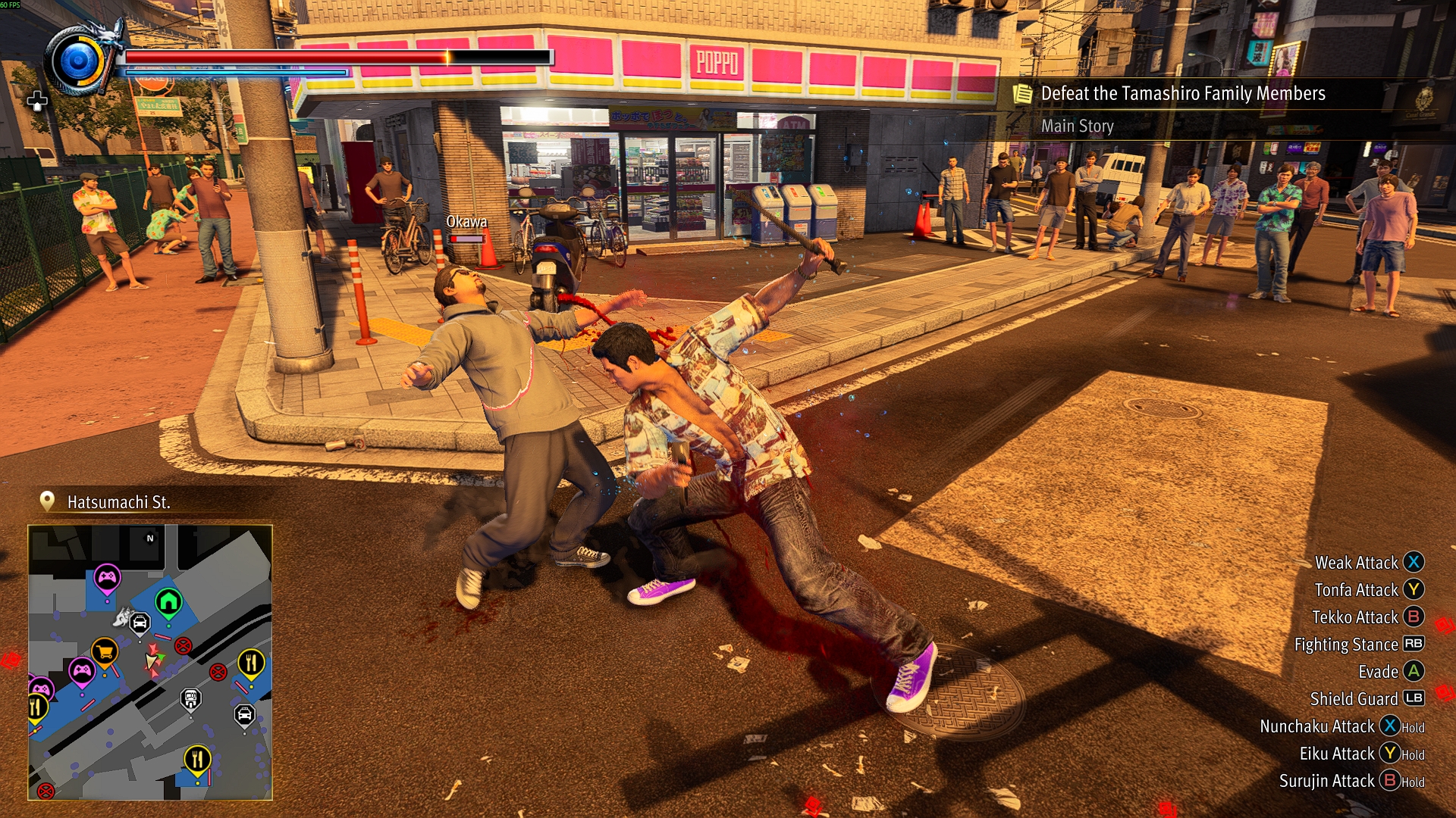 Kiryu can switch between two distinct fighting styles – the “Dragon of Dojima” street brawler style and the “Ryukyu” style which uses a variety of Japanese weapons including nunchuku (two batons linked by a chain), tonfas (paired batons) and tinbe (a small shield).