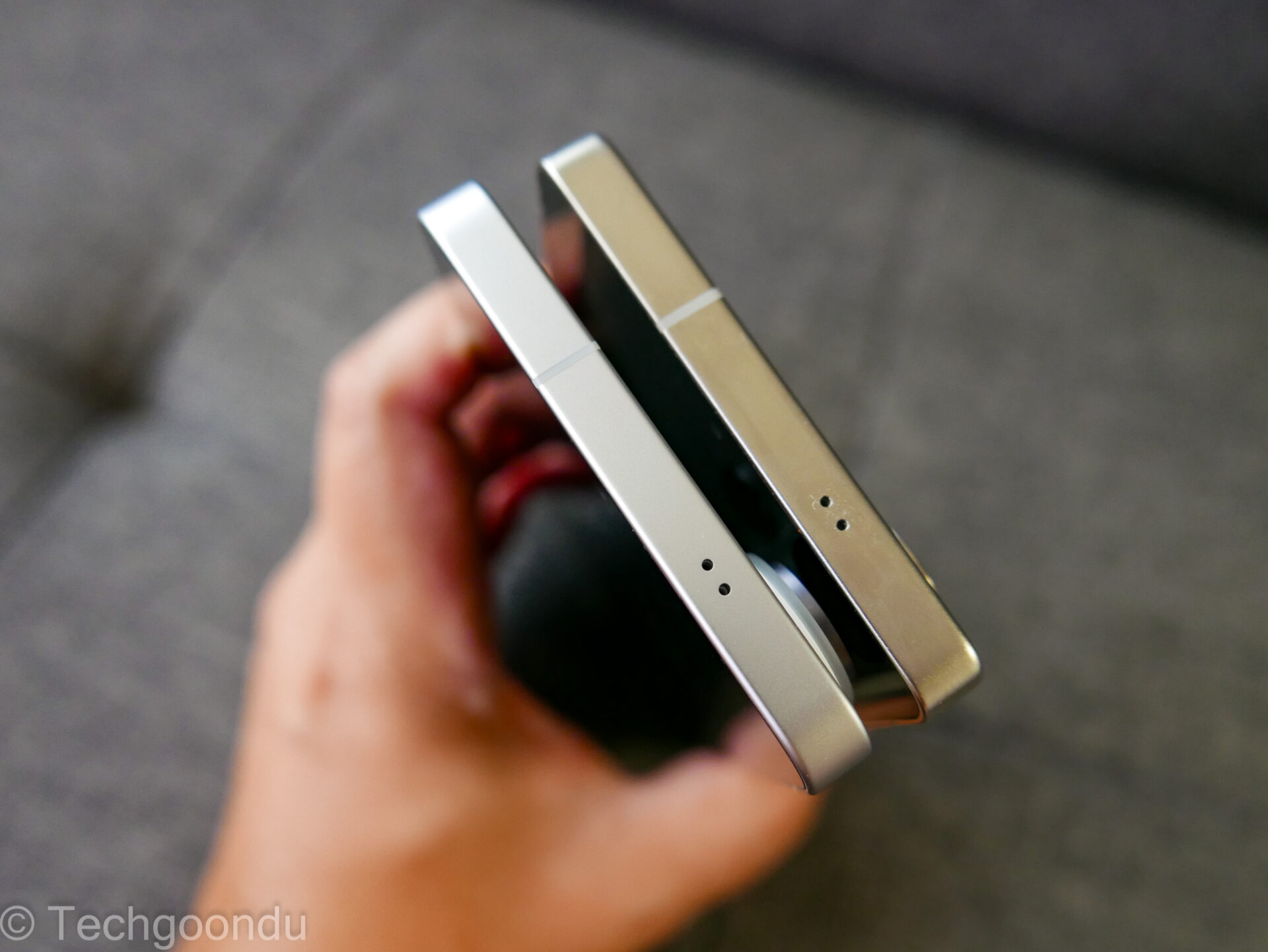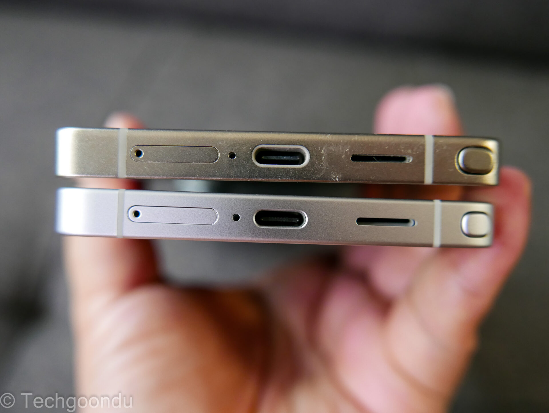 The new phone is a feather lighter at 214g, but it’s hard to tell the 4g difference from the older phone. The new phone is also a whisker slimmer – 7.9mm versus last year’s 8.2mm.