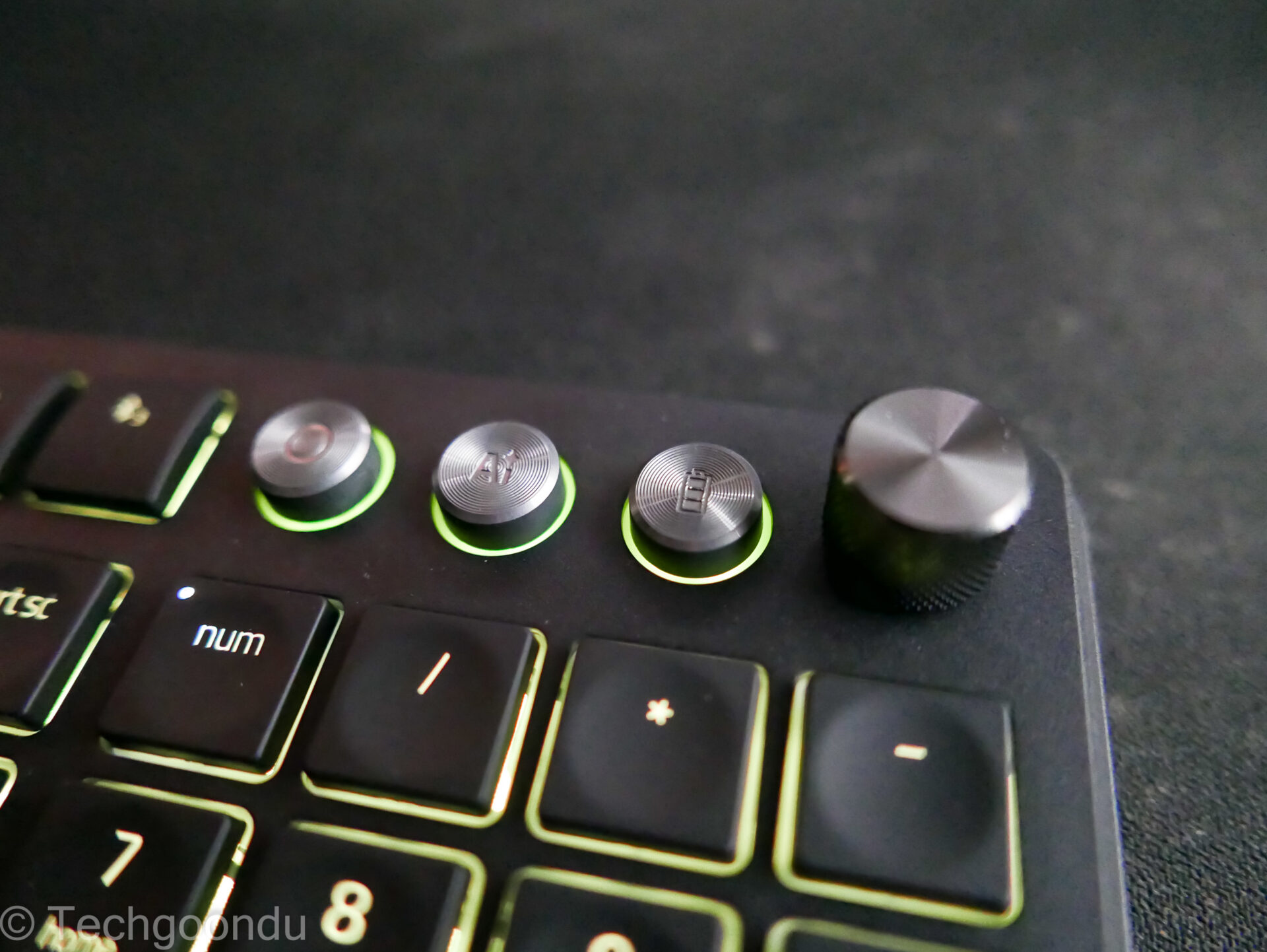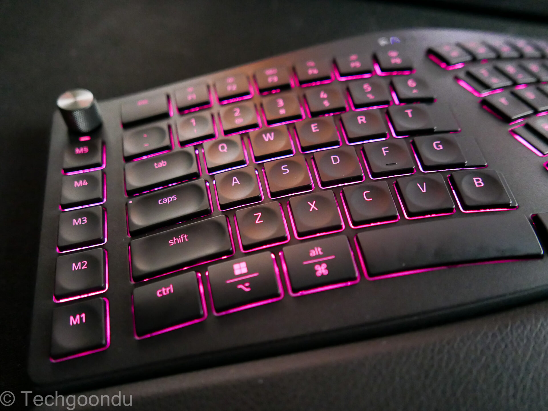 Of course, Razer wouldn’t just make a plain ergo keyboard. There are a number of hefty metallic knobs that bring the premium feel. They let you adjust the volume or switch between windows quickly, along with other customisable controls.